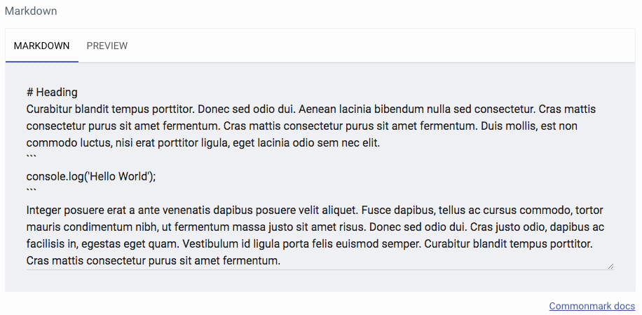 Markdown widget with preview that uses the CommonMark flavor of markdown.