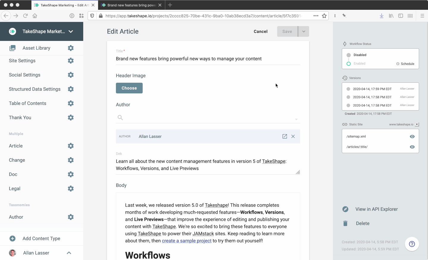 With Versions, you'll know exactly when your content was changed and by whom. You can also undo any changes—field by field, or all at once—from any previously saved version.